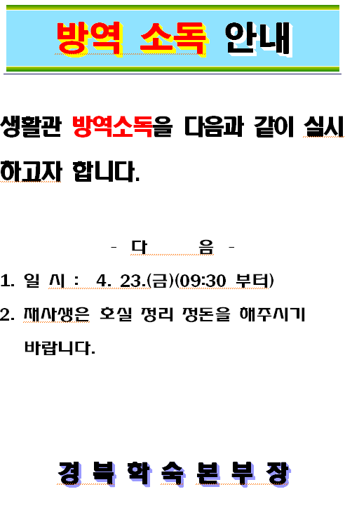 생활관 방역 소독 연기 안내