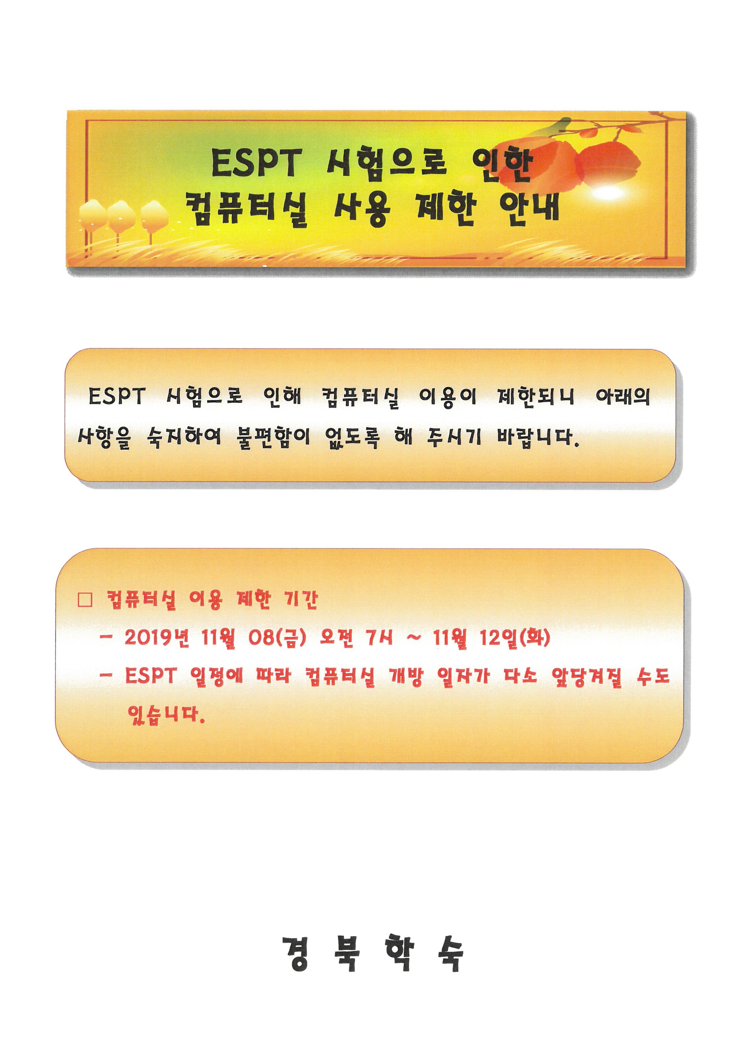 2019년 2학기 ESPT 시험 응시 안내
