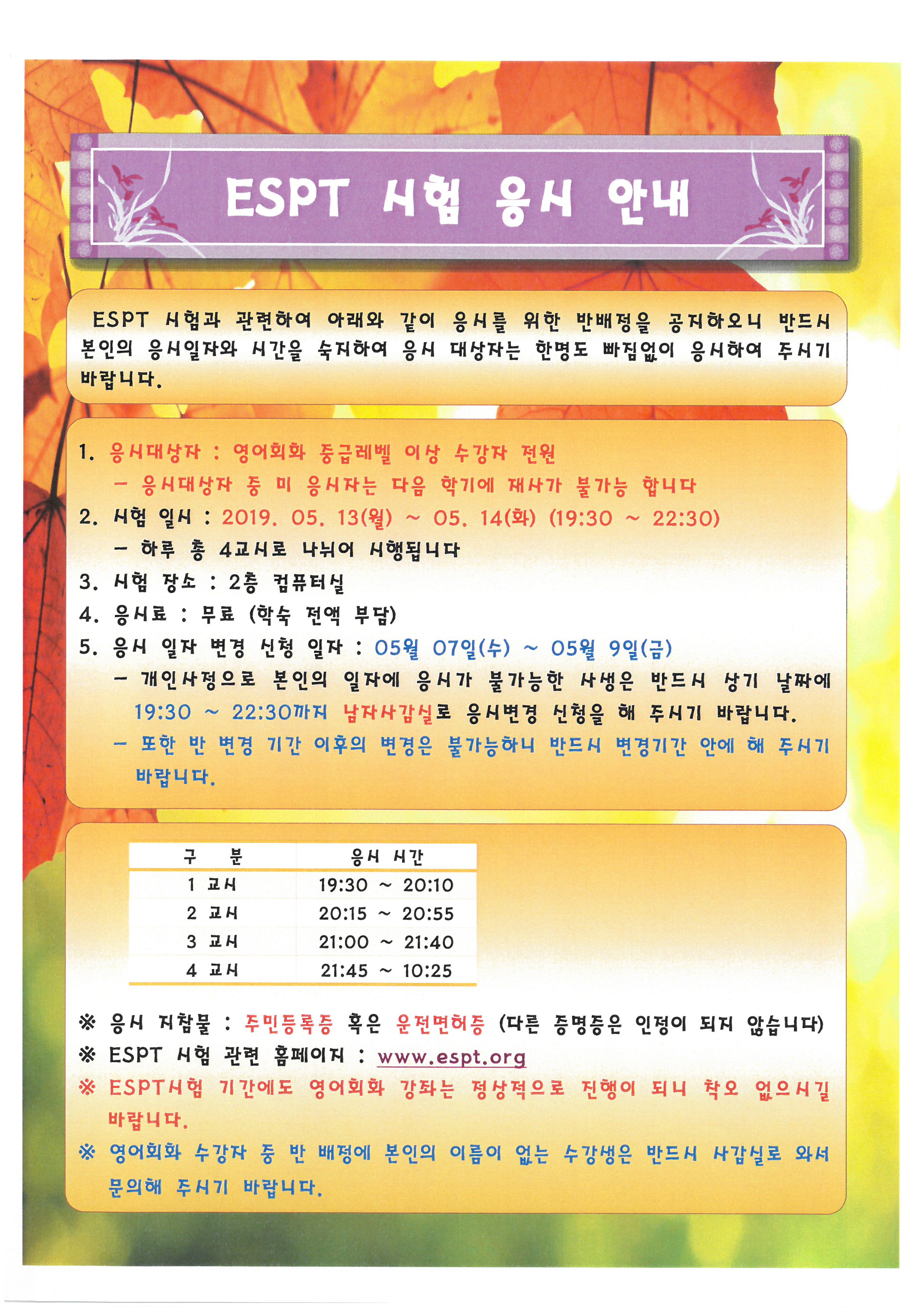 ESPT 시험 및 컴퓨터실 사용제한 안내