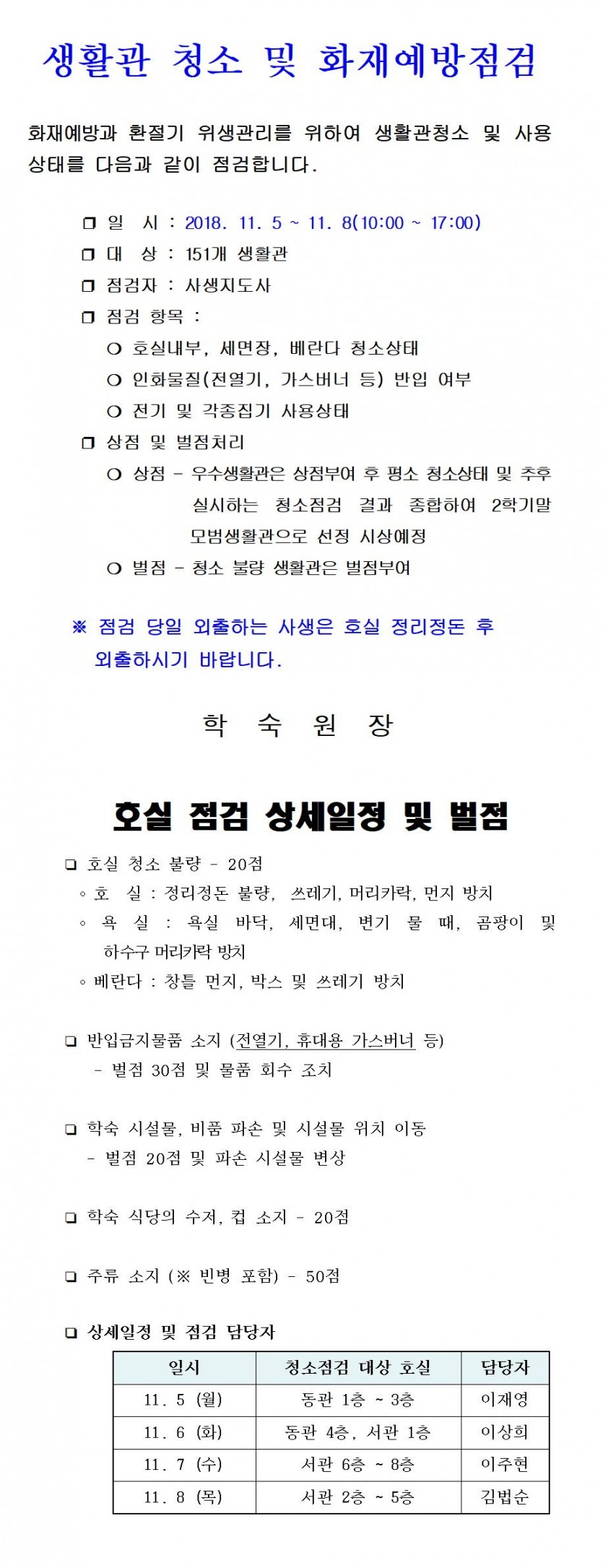2018년 2학기 생활관 점검 실시 페이지 정보 작성자 이주현 조회 6,417회 작성일 18-10-22 13:40 목록 본문 . 이전글제13회 학숙 생활수기 공모 18.10.22 다음글10월 생일 축하데이 알림 18.10.17 댓글 0 댓글목록 등록된 댓글이 없습니다.