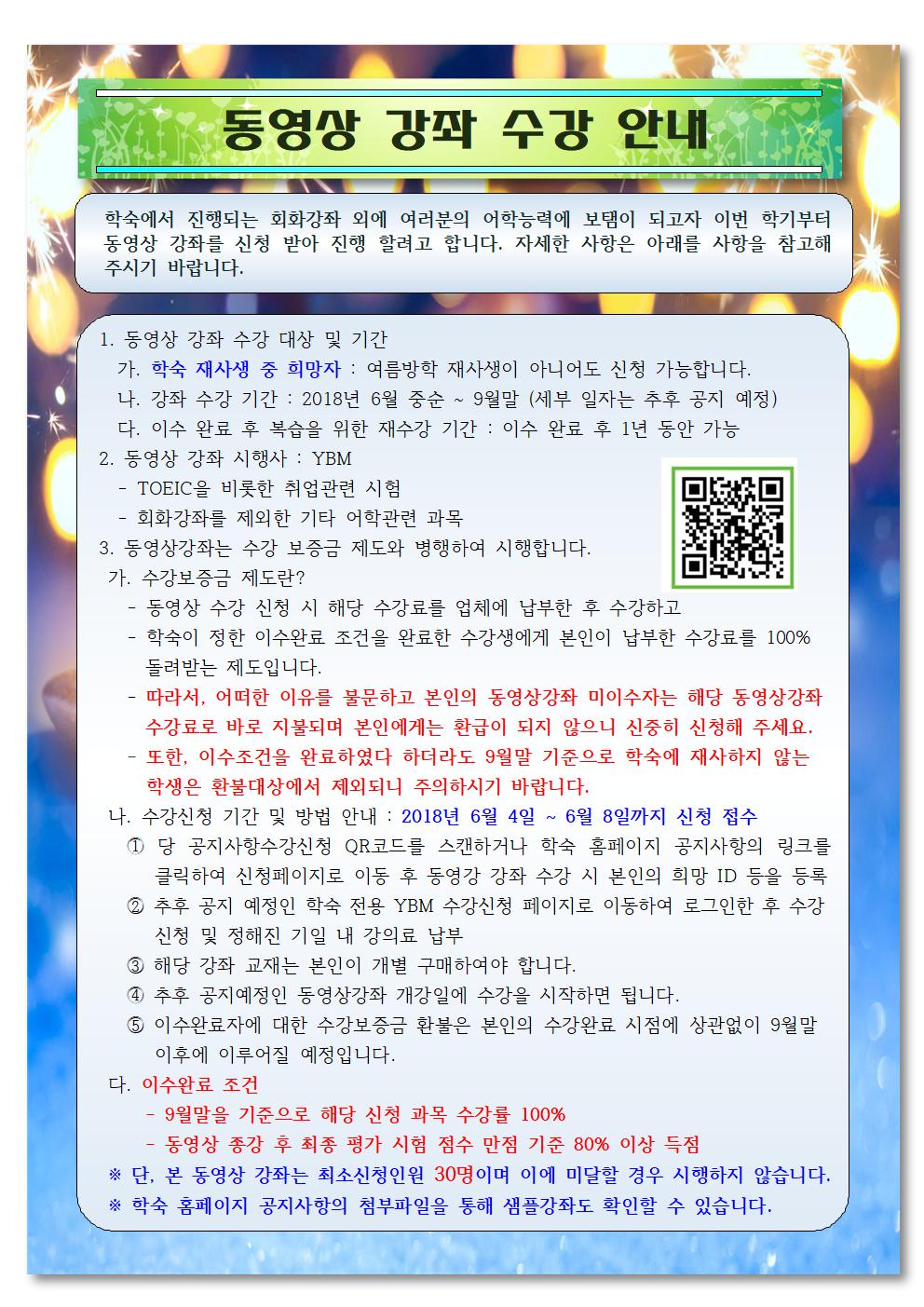 여름방학 동영상 강좌 수강 신청 안내