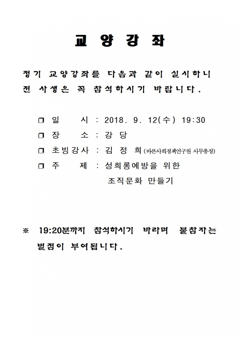 - 이전글2018년 2학기 영어회화 주요 일정 및 수강생 공지사항 18.09.05
