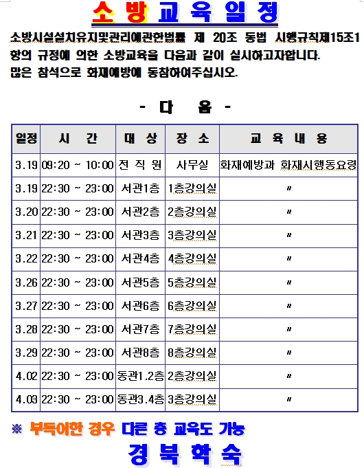 소방 교육 및 훈련 일정