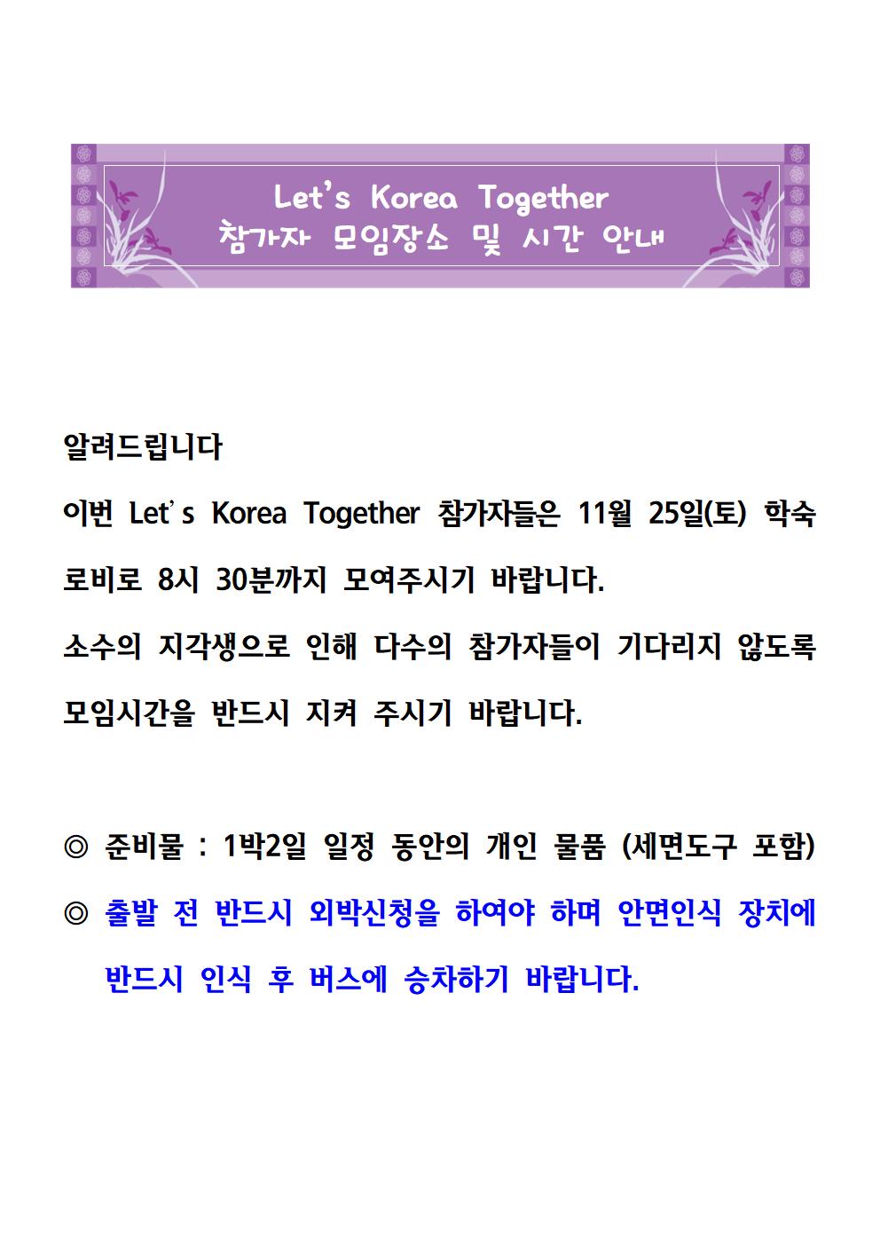 Let's Korea Together 거제,통영편 출발 모임일시 및 장소 안내