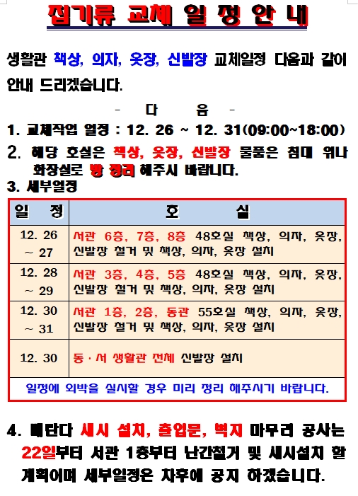 집기류 교체 일정 안내(12. 18)