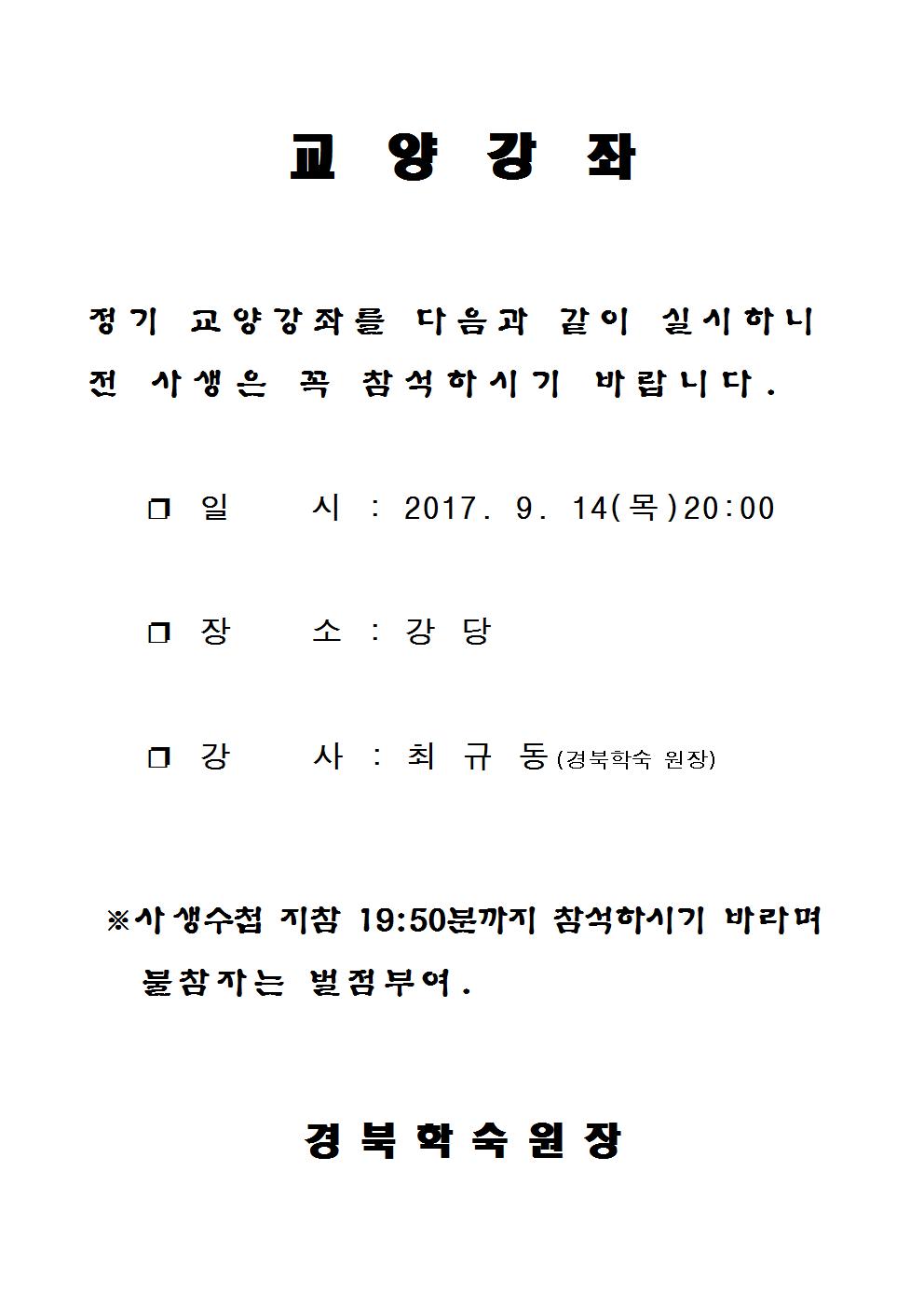 9월 정기교양강좌 실시