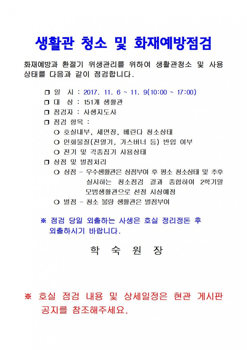 생활관 청소 및 화재예방점검 페이지 정보 작성자 이주현 조회 8,776회 작성일 17-10-25 17:20 목록 본문 . 이전글커피 좀 아는 동아리 시범 운영 모집 17.11.01 다음글제 12회 학숙생활수기 공모 17.10.25 댓글 0 댓글목록 등록된 댓글이 없습니다.
