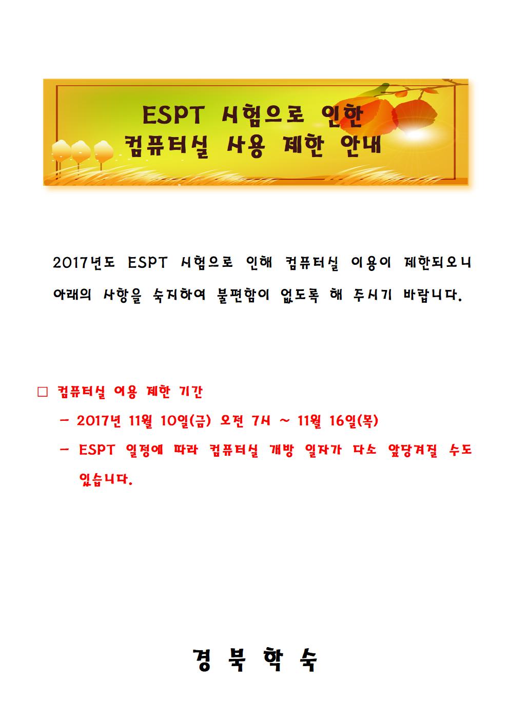 2017년 2학기 ESPT 응시 및 컴퓨터실 사용 제한 안내