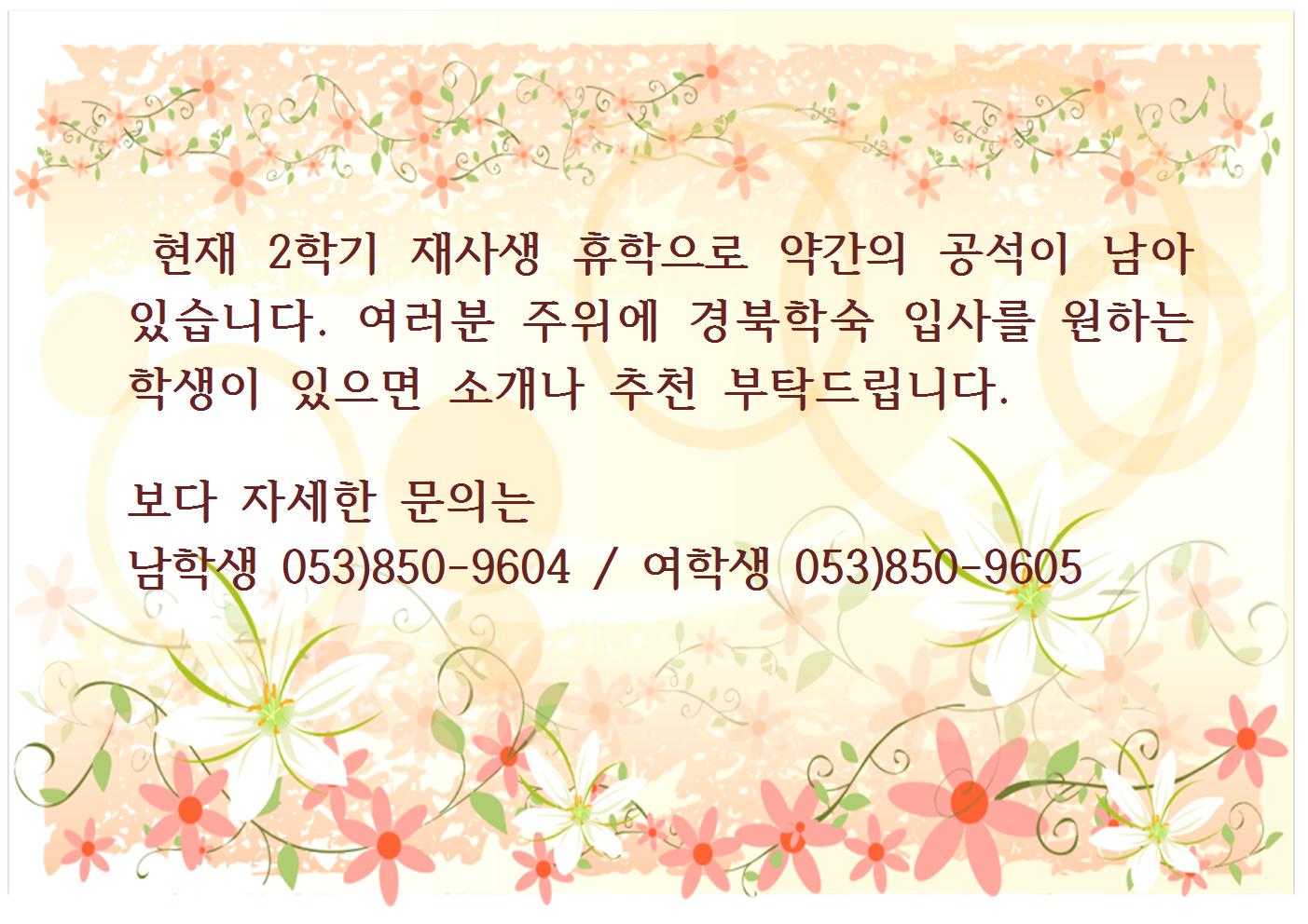 2학기 공석으로 인한 추가 선발 안내 페이지 정보 작성자 이상희 조회 19,309회 작성일 16-09-30 21:13 목록 본문 ... 이전글재학증명서, 성적증명서 제출 16.10.03 다음글학숙에서 지진발생 시 대피요령 16.09.26 댓글 0 댓글목록 등록된 댓글이 없습니다.