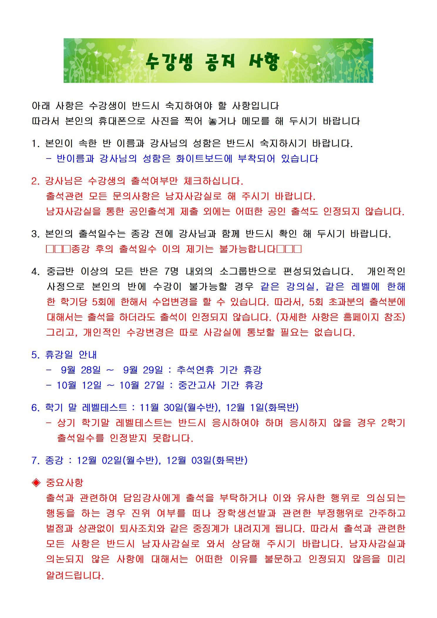 2015년 2학기 영어회화 수강생 공지사항 페이지 정보 작성자 이상희 조회 13,923회 작성일 15-09-09 16:41 목록 본문 관련 문의남사감실 이상희 이전글2학기 야식 실시 15.09.14 다음글2학기 신입사생 오리엔테이션 15.09.09 댓글 0 댓글목록 등록된 댓글이 없습니다.