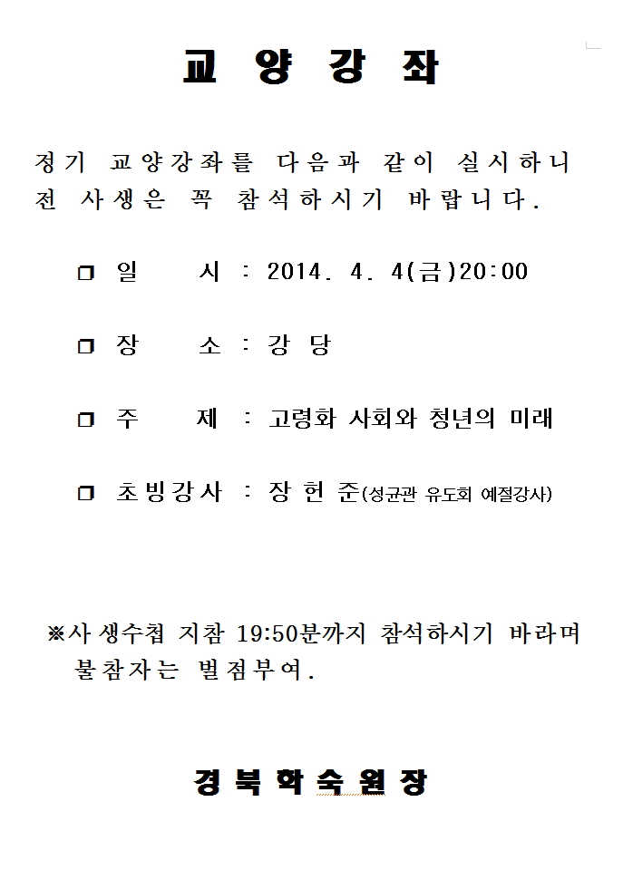 4월 정기교양강좌 실시 페이지 정보 작성자 관리자 조회 7,903회 작성일 14-04-01 09:33 목록 본문 . 이전글방충망 고장, 수리 신청 14.04.01 다음글영어회화 강좌의 일시적인 수업변경 방법 안내 14.03.27 댓글 0 댓글목록 등록된 댓글이 없습니다.