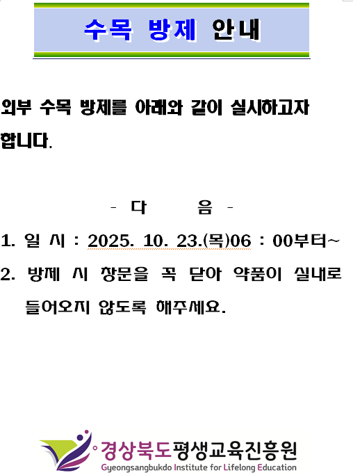 수목 방제 안내 페이지 정보 작성자 조인호 조회 569회 작성일 25-10-22 09:23 목록 본문 . 이전글10월 정기 방역 소독 안내 25.10.24 다음글2025년도「경북학숙 재사생 취업을 위한 특강」신청 안내 25.10.17 댓글 0 댓글목록 등록된 댓글이 없습니다.